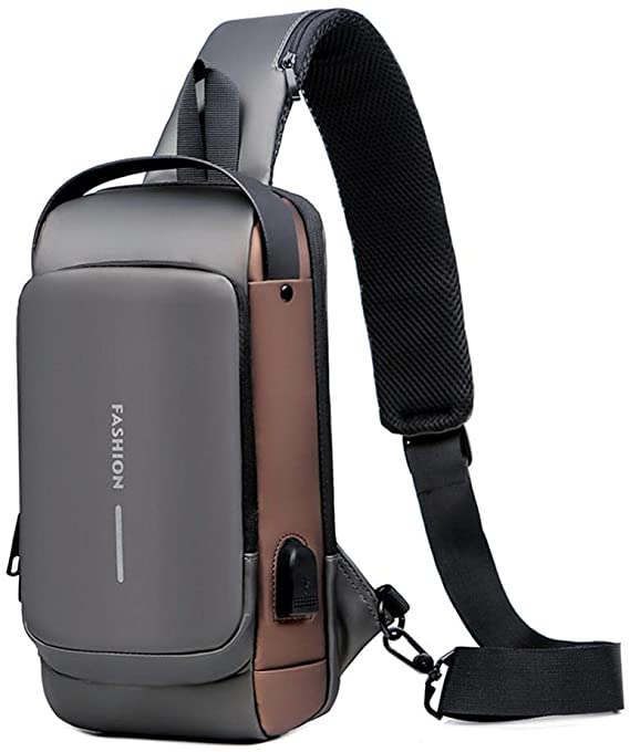 Anti Theft Fashion Crossbody Bag – Grey & Brown Color