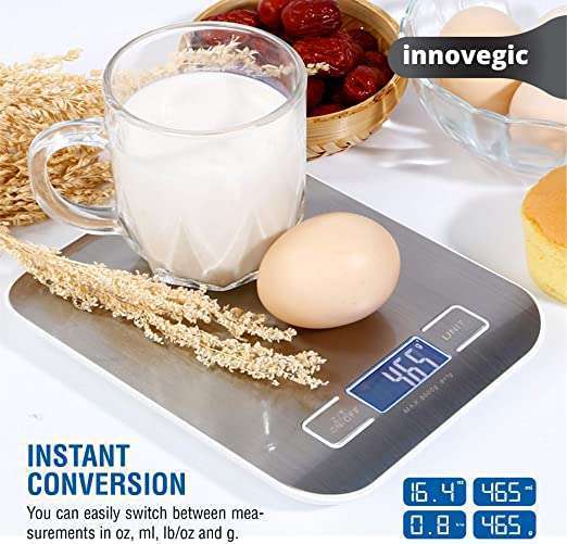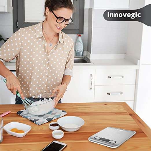 - ✅ DESIGNED FOR YOU: Cooking is easier with the Innovegic Rechargeable digital scale! This premium kitchen accessory allows you to measure virtually any ingredient with precision so you can follow any recipe and get delicious dishes. Our electronic food weighing scale increases the beauty of your kitchen items and you can use it as a diet kitchen scale to loss weight.