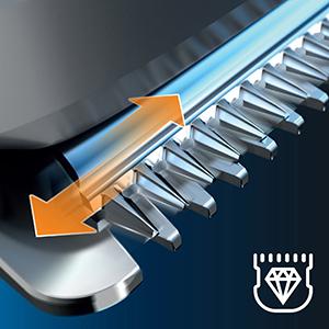 Try out a new look, any day of the week, with this durable all in one trimmer. 7 quality tools allow you to easily create the exact face and hairstyle you want. Note: Do not rinse the handle under the tap, only the attachments can be rinsed under the tap. Never use scouring pads, abrasive cleaning agents or aggressive liquids such as gasoline or acetone to clean the product. Never dry the trimmer teeth with a towel or tissue, as this may damage the trimmer teeth. After every use: cleaning under the tap 1. Turn off the appliance and disconnect from the wall socket 2. Remove any comb or cutting element from the appliance 3. Rinse the hair chamber under a warm tap 4. Clean the cutting element and comb under a warm tap 5. Carefully shake off excess water and let all parts air dry completely
