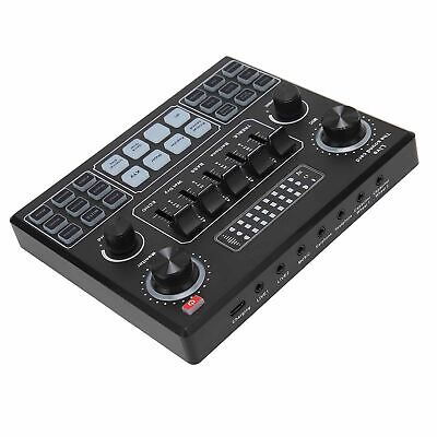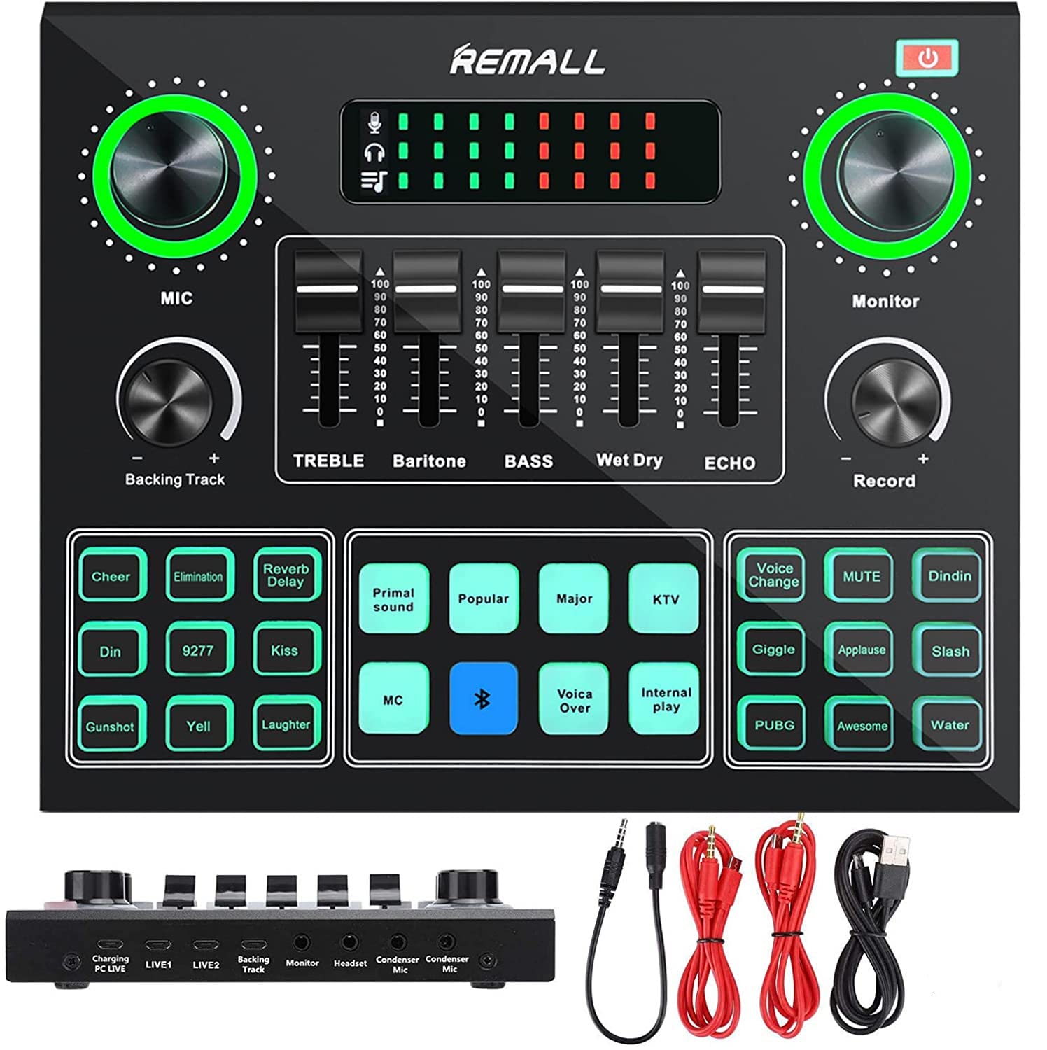 This V9 sound card adopts powerful DSP audio chip, with stable signal, nice sound quality and without delay. Tuning knob design, with 12 kinds of electricity sound and 14 warming up sound effects, support elimination of originalsound, live singing, one-button avoidance, real-time monitoring. Multifunctional, support BT accompaniment. You can have a try.